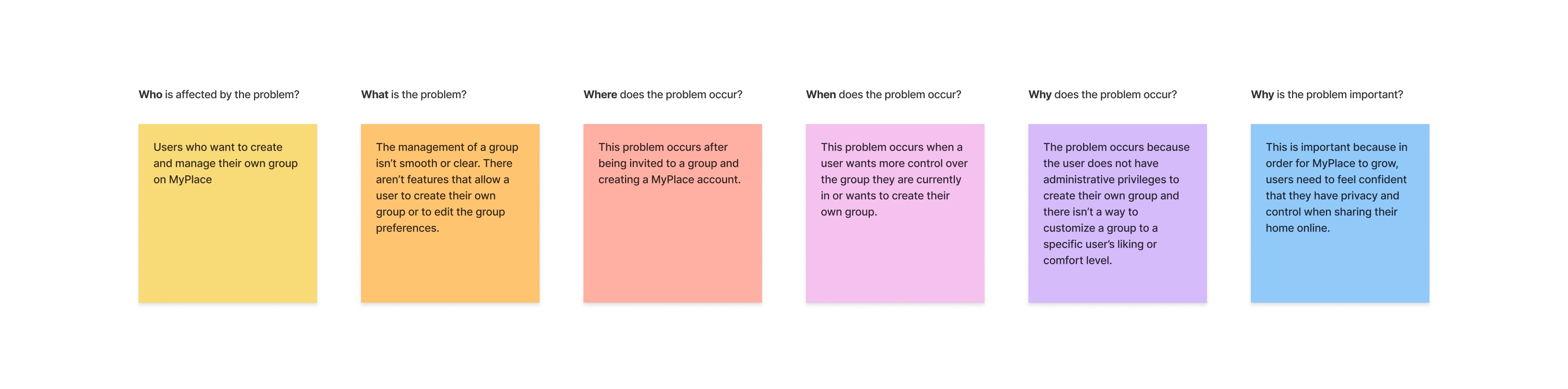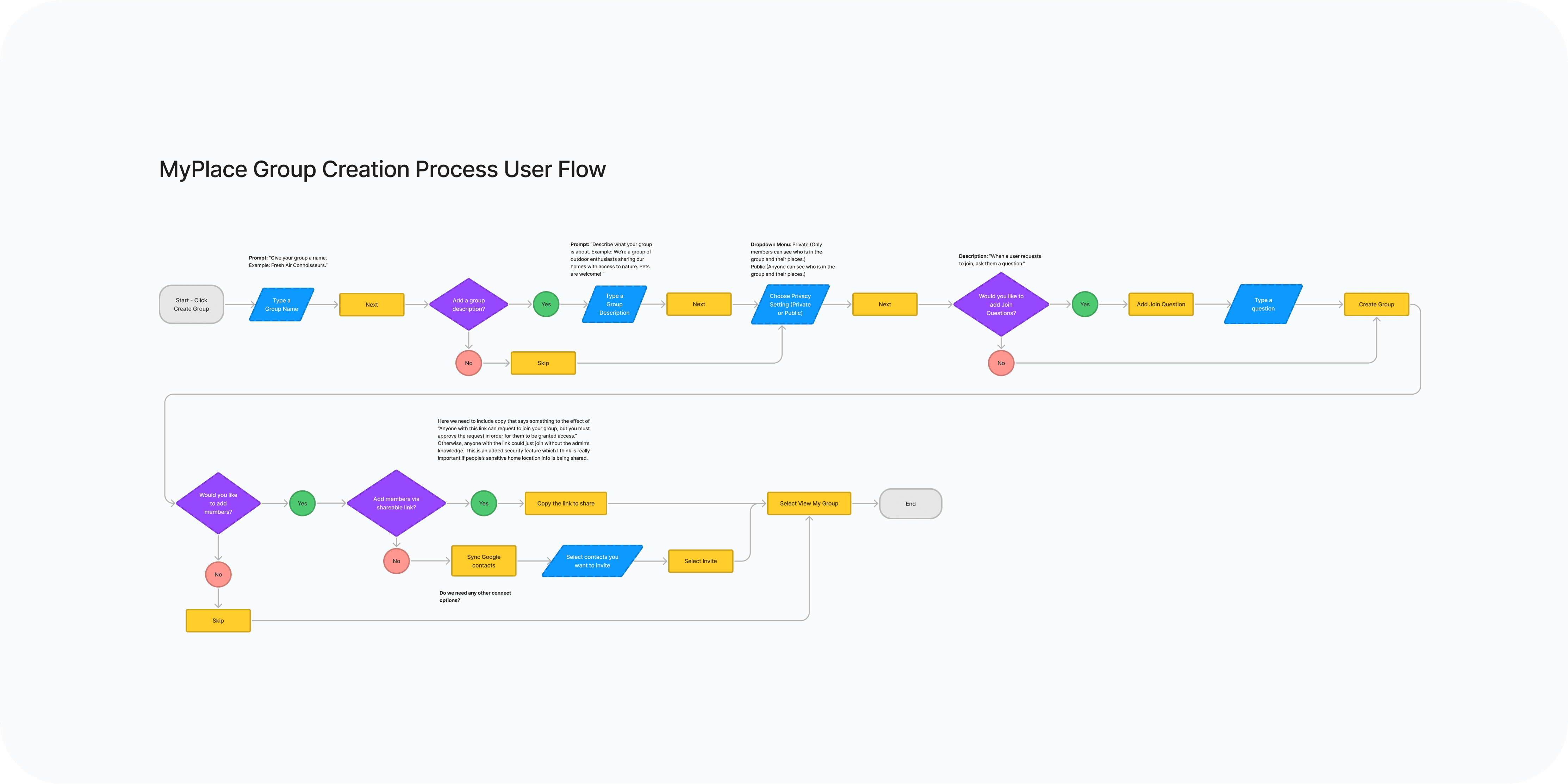 How might we provide a smooth group creation experience so users feel confident sharing their home securely in a way that allows for more people to use MyPlace?